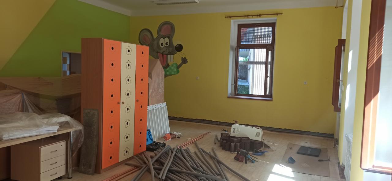 Během uzavření školky proběhla o prázdninách rekonstrukce topení. Byla vyměněna zastaralá akumulační kamna za nové radiátory. Dále byl zateplen severní štít budovy včetně nové fasády.